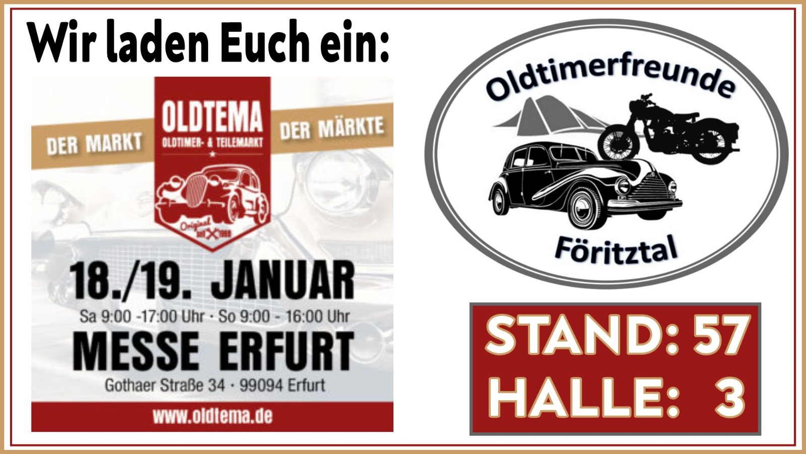 Am 18. und 19. Januar 2026 war es wieder so weit. Die MESSE OLDTEMA in Erfurt - Das Mekka für Oldtimerfans, Sammler, Schrauber und Liebhaber des rostigsten Hobbys. Danke an alle Helfer und Besucher unseres Messestandes 57, Halle 3
